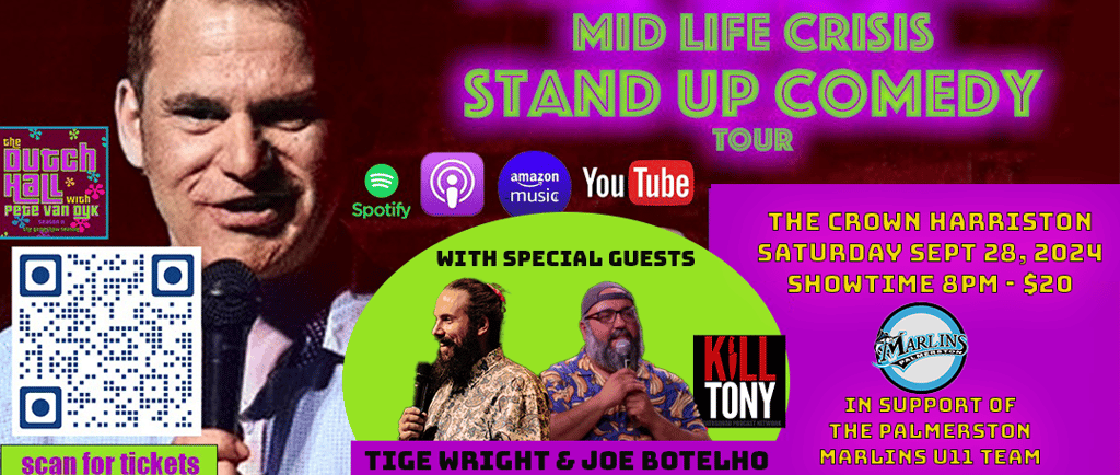 Welcome to Pete Van Dyk's "Mid-Life Crisis" Stand-Up Comedy Tour! Join us for a night of nonstop laughter at The Crown Harriston to support the Palmerston Marlins U11 softball team.
